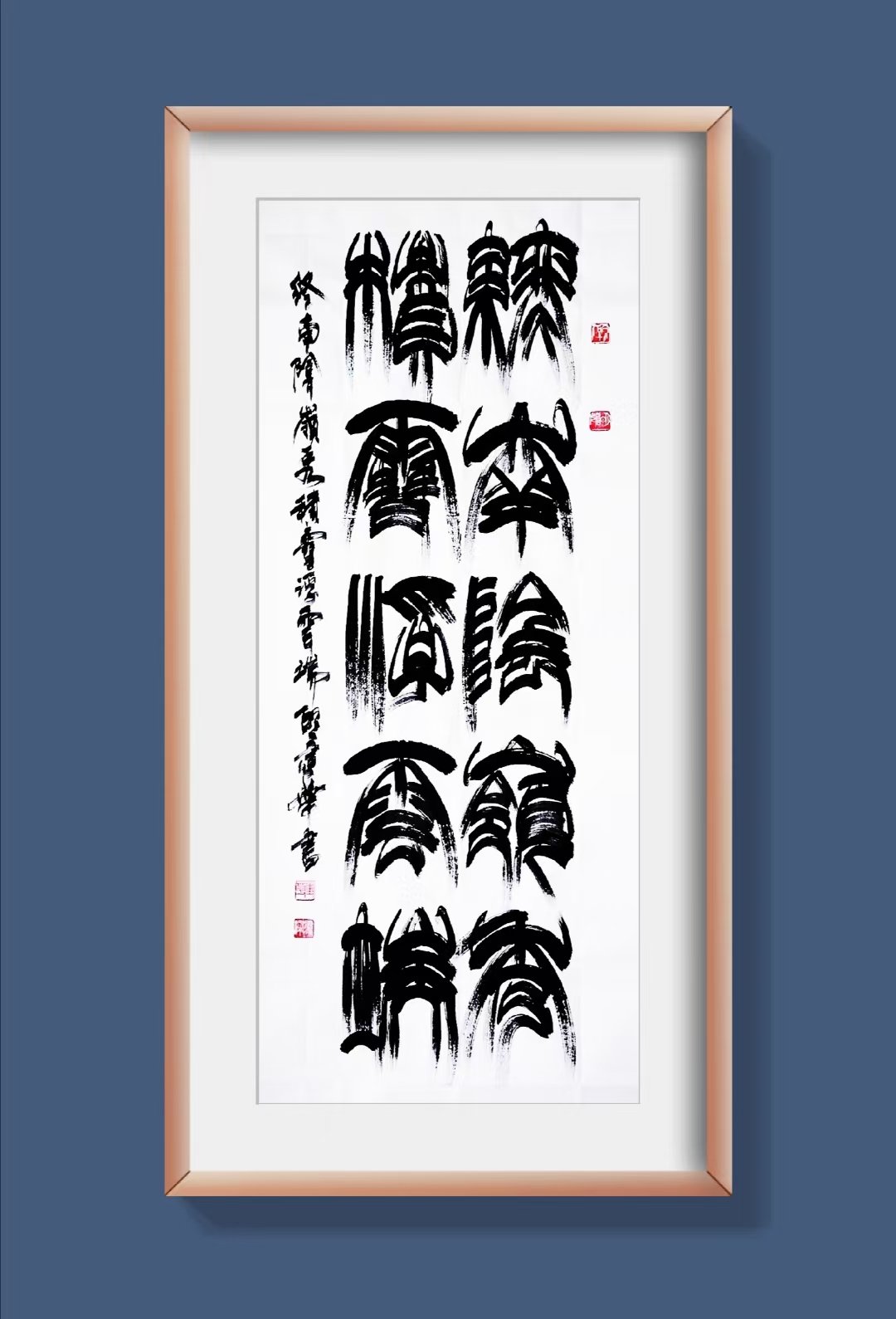 在继承传统的基础上,胡建华先生开创了新体篆书的独特风格。他的篆书作品方圆相易,直折劲健,既保留了古篆的庄重典雅,又融入了现代艺术的灵动与张力。这种创新不是对传统的背离,而是对传统的升华与发展。