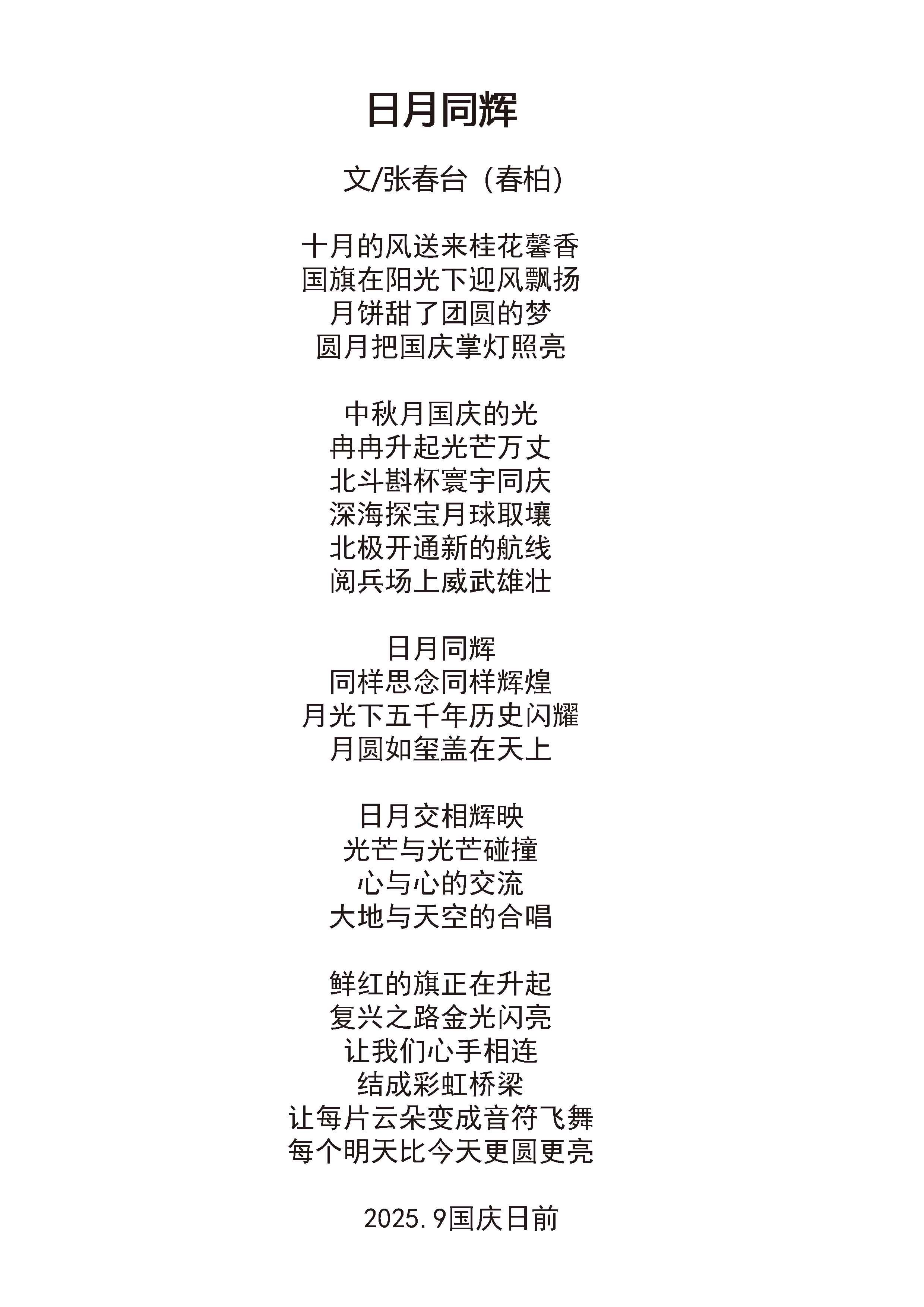 2025年新诗《日月同辉》被谱写成歌曲,全球发行。