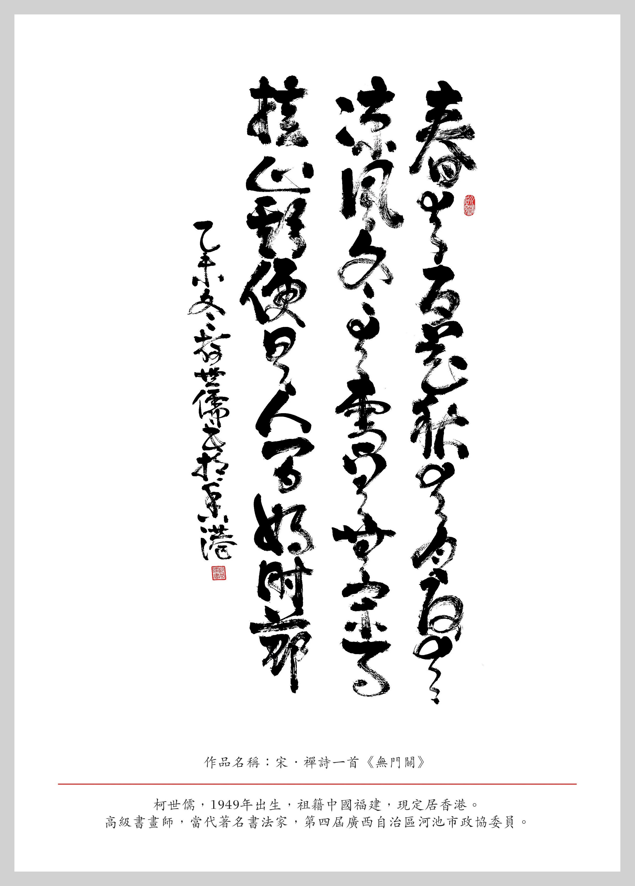 柯世儒,1949年10月出生,祖籍中国福建,长期定居香港。现任国际书画收藏家艺术交流协会秘书长、亚洲书法家协会理事、高级书法师,第四届广西自治区河池市政协委员。