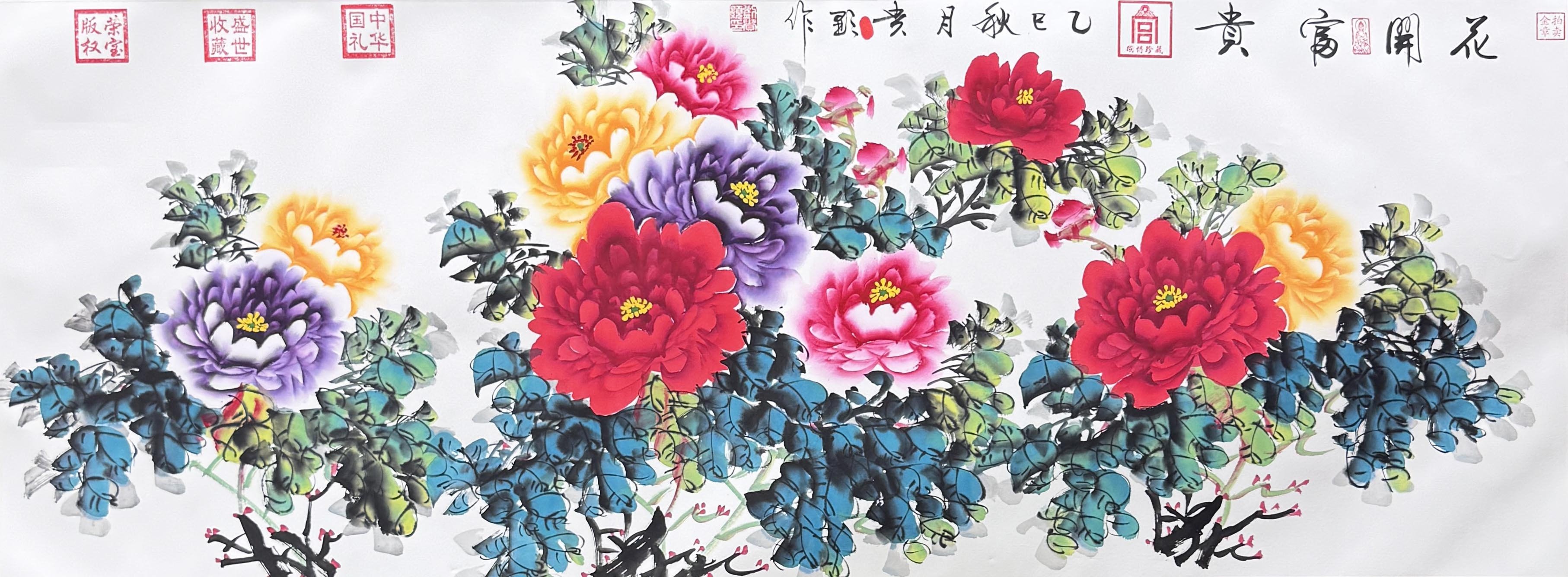 他的创作题材丰富,涵盖书法与国画多个领域,代表作品包括《紫气东来》《迎客松》《花开富贵》《九龙图》《万里雄关》《鸿运当头》《雨后漓江》《幽谷山居》《马到成功》《海纳百川》《五福》等,每幅作品均承载着其艺术思考与创作情怀。