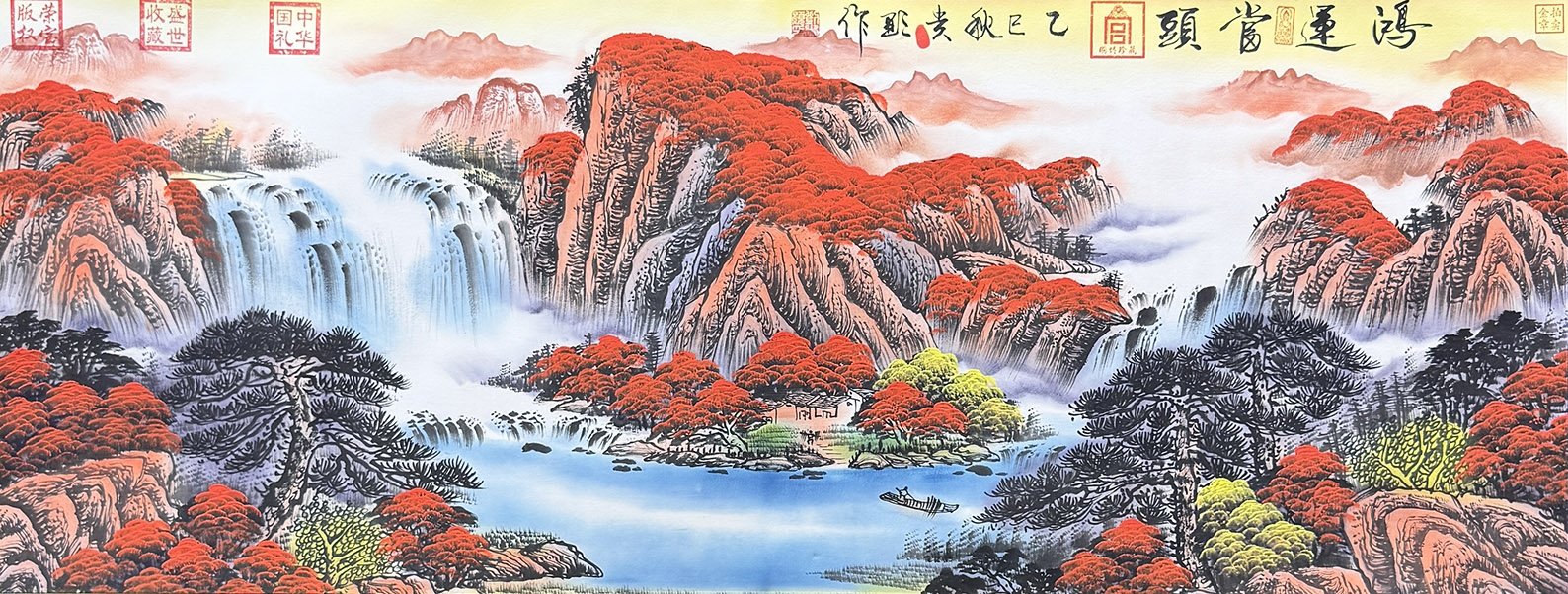 从长期价值来看,其作品兼具“传统底蕴”与“创新特质”:一方面扎根传统书画技法,确保艺术根基的稳定性;另一方面通过题材、形式(如蓝底金墨、专用染料)的创新,赋予作品时代活力,这种“传统与创新并存”的特质,使其作品既符合资深收藏家对“传承性”的要求,也满足年轻收藏群体对“独特性”的追求,未来收藏价值仍有较大提升空间。