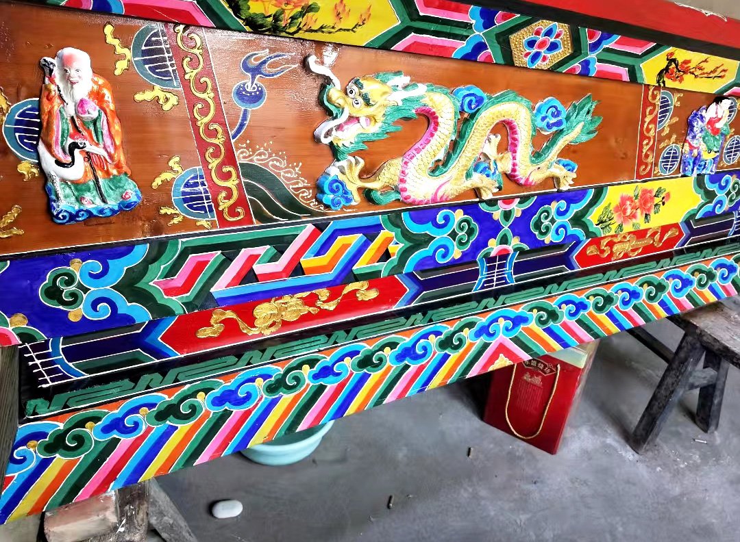 在艺术实践中,于自林始终以古建彩绘、泥塑壁画为核心载体,既坚守传统工艺的精髓,又积极探索当代创新路径。他所传承的神案绘画,不仅保留了传统题材中的文化寓意与审美范式,更通过细腻的笔触、和谐的色彩搭配,让传统图案在当代语境下焕发新的艺术活力;其泥塑与壁画作品,既还原了历史遗存中的工艺细节,又融入对现代审美需求的考量,实现了“守正”与“创新”的有机统一。多年来,他的技艺实践不仅让濒临失传的传统技法得以延续,更形成了兼具文化厚重感与艺术表现力的个人风格,成为非遗技艺在当代传承的典型样本。