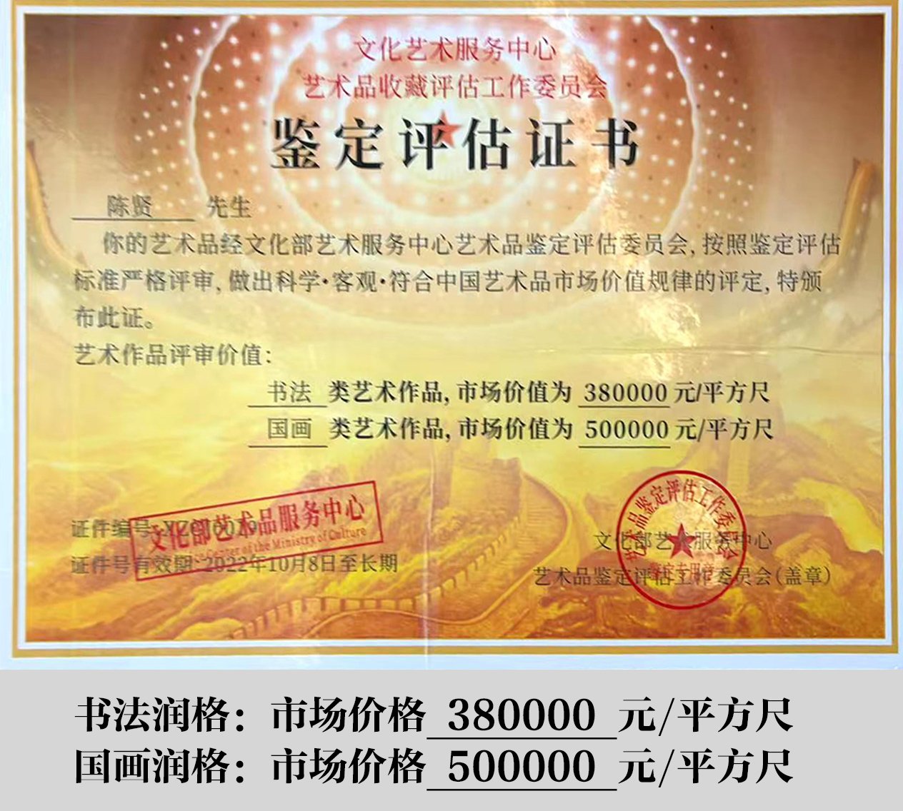 凭借深厚的艺术修养与广泛的行业影响力,陈贤受邀担任荣宝斋画院艺术顾问、北京齐白石艺术研究会副会长、国际书画艺术家联合会艺术顾问、中国书画院研究院副院长、中国艺术研究院艺术品鉴定研究室顾问等职。在这些岗位上,他不仅持续推动传统艺术的传承与弘扬,更以自身实践践行着中华民族一脉相承的审美追求,其艺术成就与行业贡献,已成为当代传统艺术领域的重要标杆。