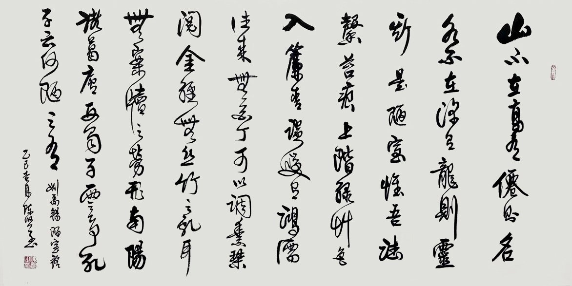 陈贤先生的书法启蒙源于家父熏陶,自幼便对笔墨之道心生敬畏,临池不辍。潜心研学国画传统技法与诗词歌赋,六岁习书、七岁学画的积累,让他对写生、临摹、双勾等技法的掌握精准入微,每一笔每一划皆见扎实功底。他于书法一道尤显功力,行、草、楷、隶、篆及瘦金体六体全能,笔墨间既有传统法度的严谨,又不失个人风格的灵动;篆刻创作则刀工精妙,与书画艺术相得益彰。他深耕传统,于晋唐法帖中汲取精髓,尤精行书、楷书、草书,形成了“承古而不泥古,创新而有根基”的独特风格。其楷书取法欧颜柳赵,结体端庄稳健,笔法精谨细腻,兼具唐人法度与文人意趣;行书则融合“二王”的灵动飘逸与米芾的沉着痛快,笔断意连间气脉贯通,每一笔划皆含刚柔相济之妙;草书更显性情,师法怀素、张旭的奔放气势,却又暗含理性节制,线条流转如行云流水,墨色浓淡干湿变化丰富,在虚实对比中营造出强烈的视觉张力与韵律美感。