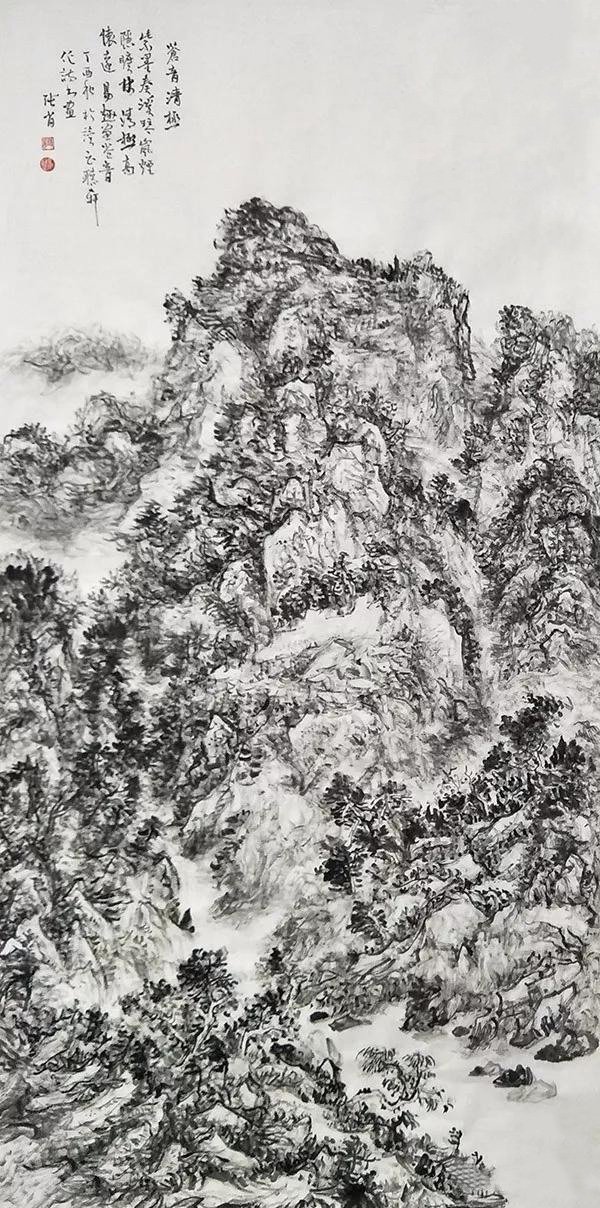 这种韵律,让静态的画面有了“流动感”:墨色的浓淡、线条的缓急,不再是技法的堆砌,而是情绪的节拍,既撑得起“玄境”的空灵,又填得满人间的烟火,让作品的思想层次在节奏里自然生长。