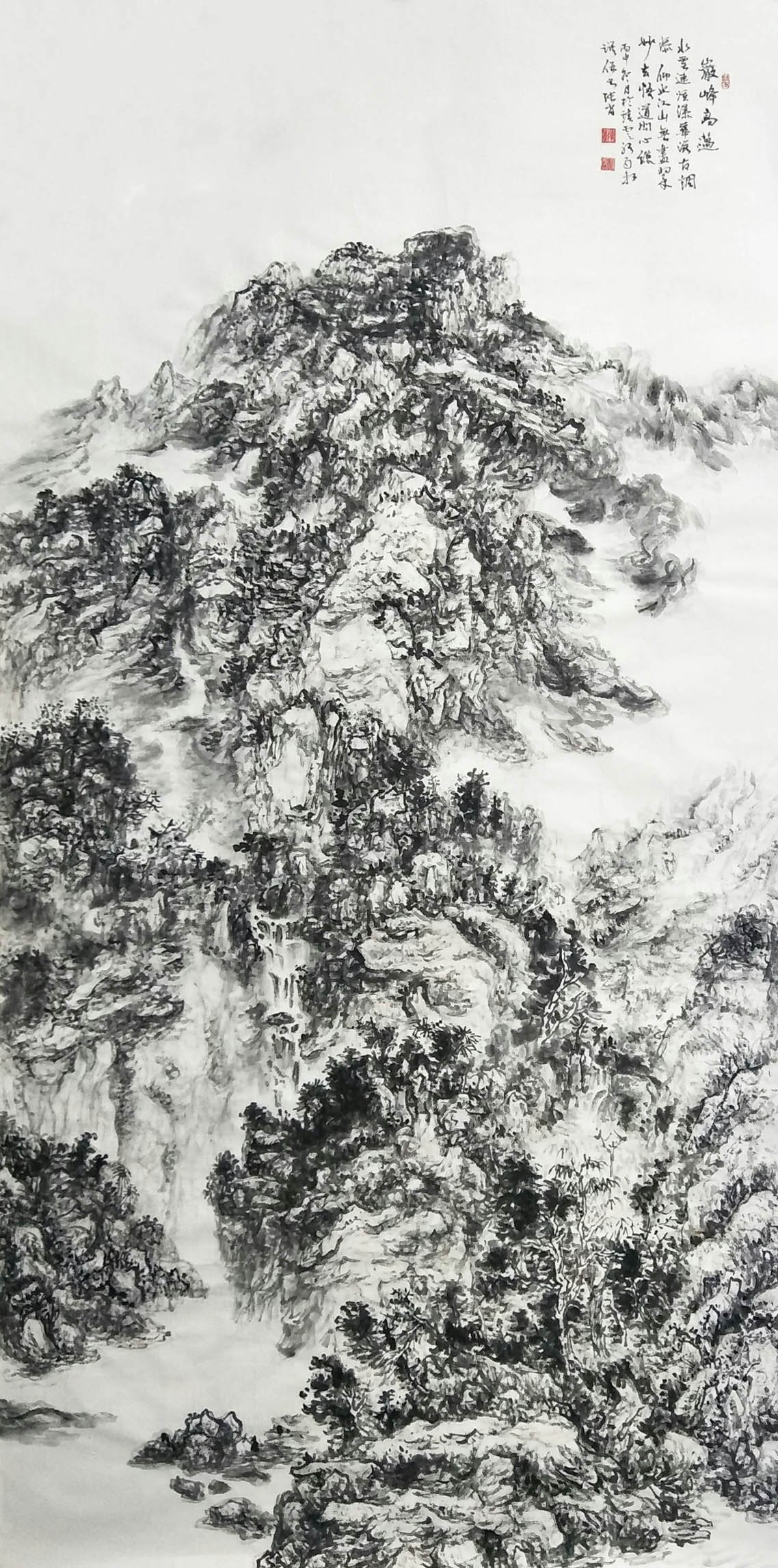 张肖的山水,是对传统笔墨语言的“激活”。 她对宋元山水的笔法有深透的理解:层层积墨的山石承续了董源“淡墨轻岚”的意境,转而以层层积墨的“破墨法”,让山石既有传统山水的厚重肌理,又晕染出朦胧的空濛感,恰似山间常绕的雾气。这种“以古为基”的笔墨,并非复刻,而是“转译”——她将传统山水的“可观、可游”,转化为当代人能感知的“可感、可栖”。