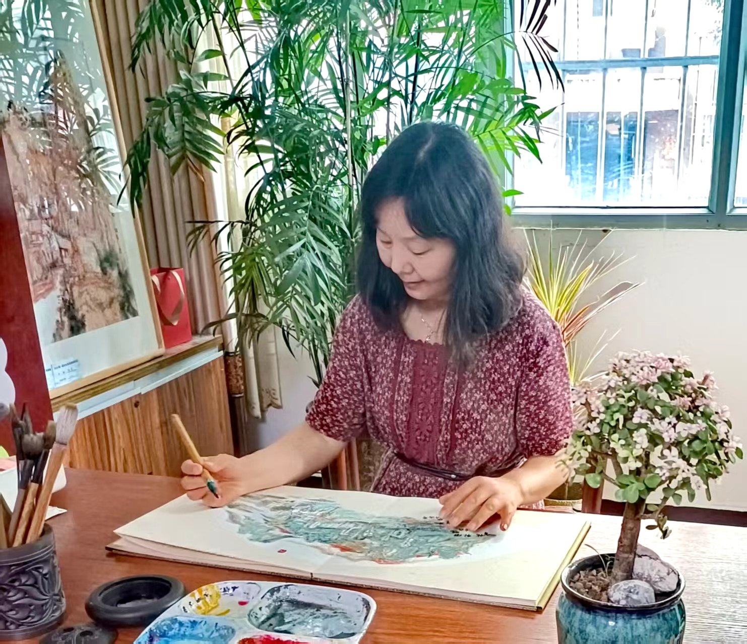 在中国书画数千年的文脉里,山水从来不是“自然的复刻”,而是“精神的容器”——从宗炳“澄怀观道”的卧游,到倪瓒“逸笔草草”的孤往,再到傅抱石“山河新貌”的抒情,山水的形态随时代精神更迭,却始终锚定“天人共生”的内核。张肖的书画,恰是这条脉络在当代的生动延续:她以愚公故里的文化根脉为滋养,以传统笔墨为脉,在“承古意”与“写今情”的平衡中,重构了中国山水传统的当代表达,将当代生活意趣融入书画意境,不仅实现了对中国传统书画精神的深度赓续,更以独特的艺术表达,为传统书画在新时代的发展提供了可借鉴的实践路径。在水墨与色彩的交织里,织就了“古意”与“今情”共生的艺术世界。其艺术风格的文化意义,正在于让古老的山水精神“活”在当下。