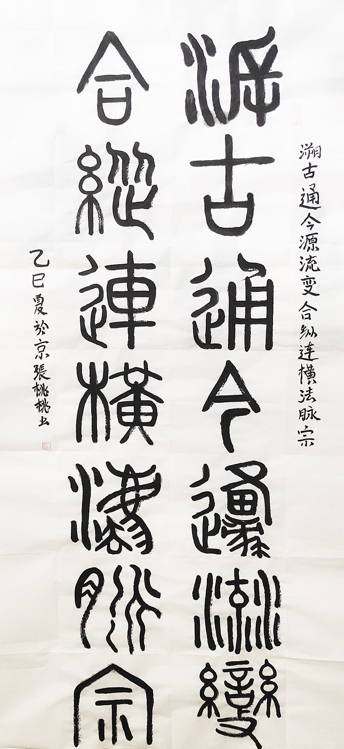 张桃桃 当代诗人 ,中华非遗文化传承人 ,对外文化友好使者,毕业于北京中医药大学。现为北京炎黄文化研究院会员、并为中国楹联学会,、中华诗词学会、中宣盛世国际书画院、世界汉语作家协会等文化机构会员。小时接触书法,被老师画红圈点评军字体一竖的正直,从此爱尚书法,多以春联趣入,之后在御生堂任中药调剂师期间,有幸研习其古医方剂及书法之美,乐于学习探讨。偶遇习书人士大康先生传承人齐君老师并跟随学习,精研临摹而习得书法作品,同期参加国开书法学院“书苑点晴”、“新书苑”两期全国榜书艺术暨师资技能书法高研班学习、作品入选期刊。后期参加中华翰墨双创教育“溯古通今”书法特训高研班学习,常随师持续进行送艺术下乡,精神文明建设走进群众公益文化宣传的普惠活动。有书法作品入选兰亭书法网举办“兰亭书展”荣获证书,经中国文化遗产保护研究院文学书画艺术院授予“中国人民文艺家”称号。在中宣盛世国际书画院举办“盛世风采.艺术中国”暨全国实力派艺术名家活动中,其作品入选“会国优秀名家扑克艺术名品雅集”。应邀参加第十九届中国世际大采风活动年度总结表彰大会暨CC丅V智慧中国栏目电视人物版奖盛典获“中国当代德艺双馨艺术家”荣誉称号。在第九届传统文化传承与发展大会暨榜样力量2024新闻人物年度盛典中,获“2024中华文华年度新闻人物”称号,诗词作品入选《流芳中国.群英谱》官刊。