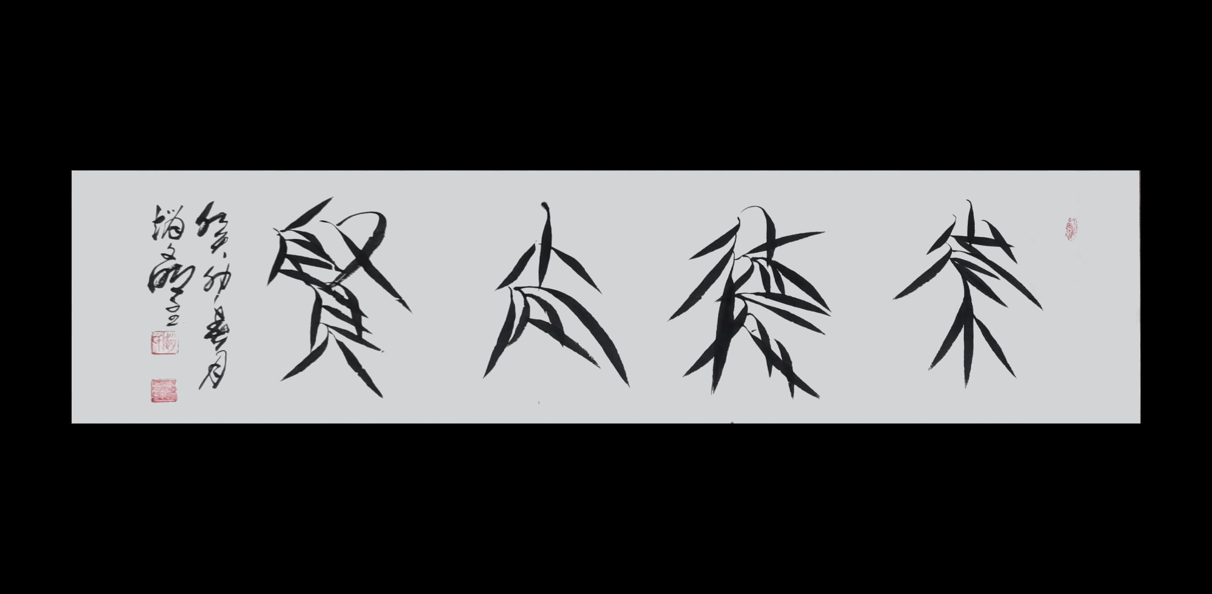 先生深谙“书为心画”之理,于书法一道,遍临历代名帖,精研篆隶草行楷诸体,尤擅行草与创意书法。其行草作品取法魏晋风骨,融唐宋笔意,笔墨苍劲洒脱,结体开合有度,气韵贯通古今,既存古法之醇正,又具时代之生机,于提按顿挫间尽显文人风骨;其独创的 “竹叶书” 更是独步艺林,以竹为形、以字为骨,将书法线条与墨竹意趣完美融合,化用古人 “诗竹画” 的千年国粹,以纯朴苍劲的笔墨,营造超然尘外的意境,让每一幅作品都渗透着古朴厚重的文人印记,铸就了当代书画领域的独特翰墨丰碑。