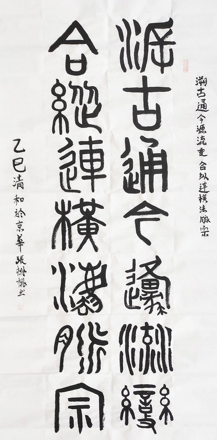 张桃桃 当代诗人 ,中华非遗文化传承人 ,对外文化友好使者,毕业于北京中医药大学。现为北京炎黄文化研究院会员、并为中国楹联学会,、中华诗词学会、中宣盛世国际书画院、世界汉语作家协会等文化机构会员。小时接触书法,被老师画红圈点评军字体一竖的正直,从此爱尚书法,多以春联趣入,之后在御生堂任中药调剂师期间,有幸研习其古医方剂及书法之美,乐于学习探讨。偶遇习书人士大康先生传承人齐君老师并跟随学习,精研临摹而习得书法作品,同期参加国开书法学院“书苑点晴”、“新书苑”两期全国榜书艺术暨师资技能书法高研班学习、作品入选期刊。后期参加中华翰墨双创教育“溯古通今”书法特训高研班学习,常随师持续进行送艺术下乡,精神文明建设走进群众公益文化宣传的普惠活动。有书法作品入选兰亭书法网举办“兰亭书展”荣获证书,经中国文化遗产保护研究院文学书画艺术院授予“中国人民文艺家”称号。在中宣盛世国际书画院举办“盛世风采.艺术中国”暨全国实力派艺术名家活动中,其作品入选“会国优秀名家扑克艺术名品雅集”。应邀参加第十九届中国世际大采风活动年度总结表彰大会暨CC丅V智慧中国栏目电视人物版奖盛典获“中国当代德艺双馨艺术家”荣誉称号。在第九届传统文化传承与发展大会暨榜样力量2024新闻人物年度盛典中,获“2024中华文华年度新闻人物”称号,诗词作品入选《流芳中国.群英谱》官刊。