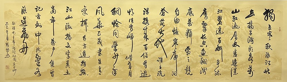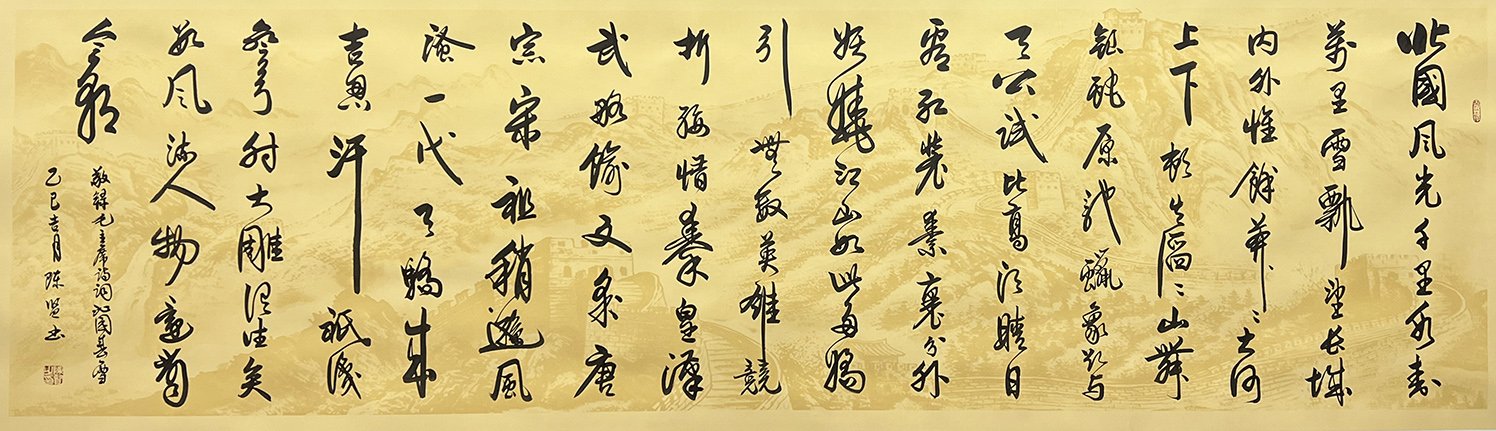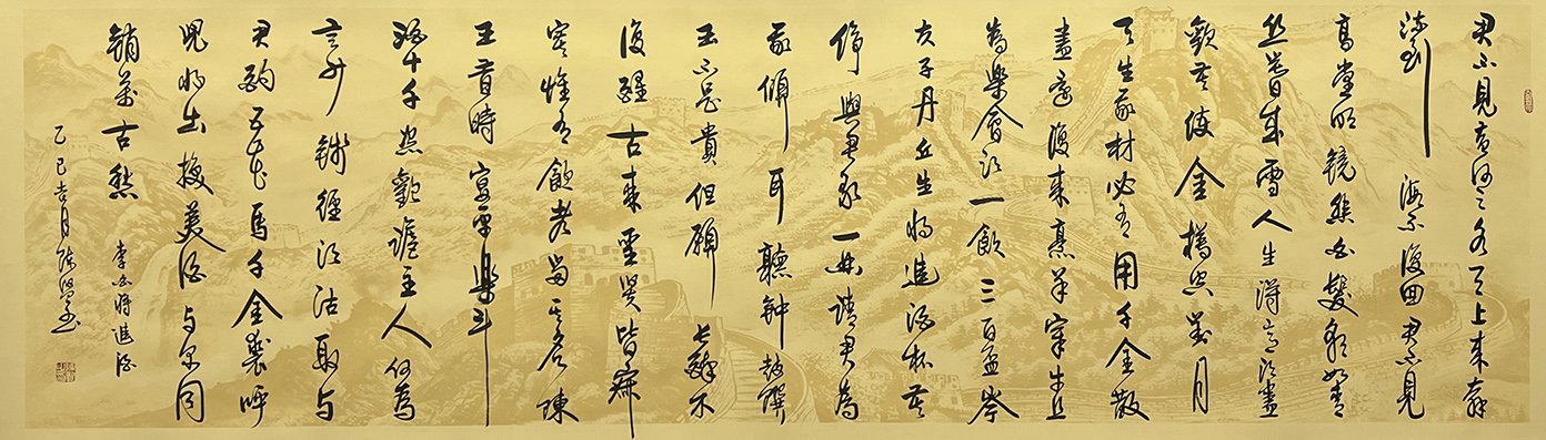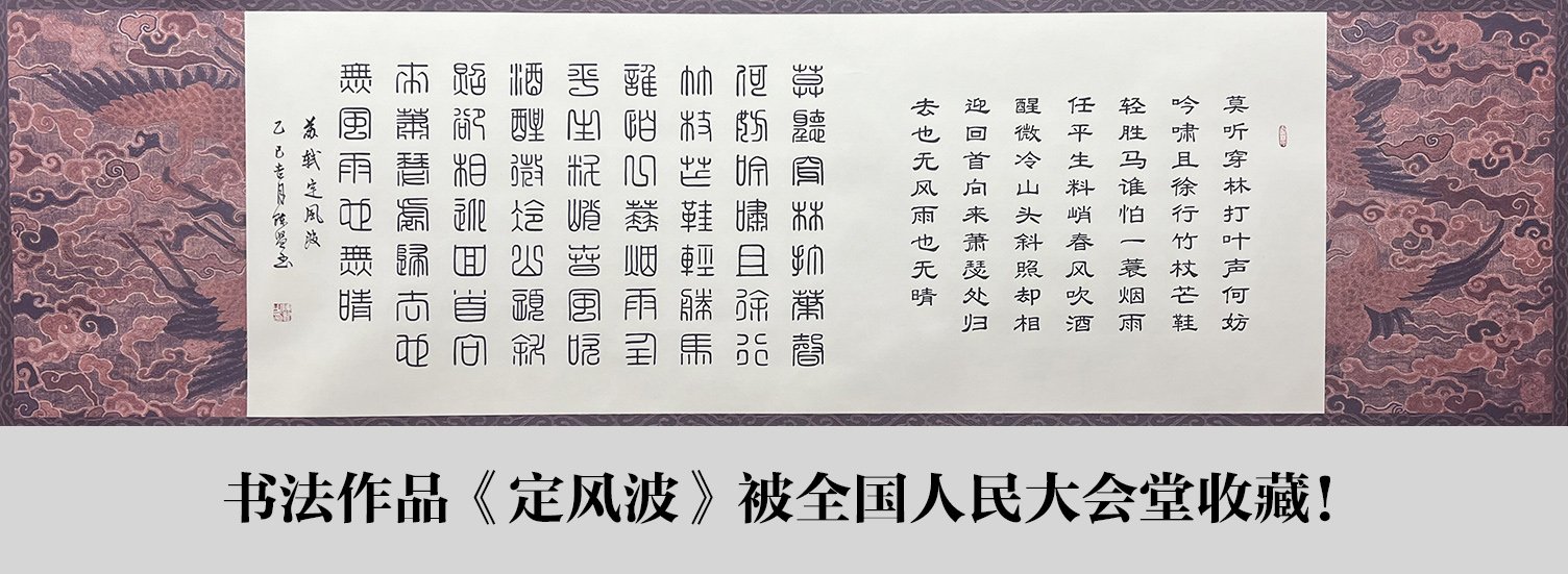 更值得瞩目的是,他的诸多代表作被权威机构永久收藏,成为当代书法艺术的重要留存:2018年,行书作品《水调歌头》以凝练笔法再现古典诗词意境,被故宫博物馆纳入馆藏;2021年,受邀为人民大会堂创作《将进酒》,笔势豪迈奔放,贴合诗词磅礴气势,作品完成后即被人民大会堂悬挂并收藏;2022年,《沁园春·雪》以开阔格局与苍劲笔墨,入驻毛主席纪念堂,成为传递时代精神的艺术载体;2024年,楷书作品《宁静致远》因兼具端庄气韵与文化内涵,受邀为天安门城楼创作并收藏。凭借这一系列成就,他成为当代少数作品能同时入驻多处国家级殿堂的书法家,其艺术高度与文化价值备受认可。