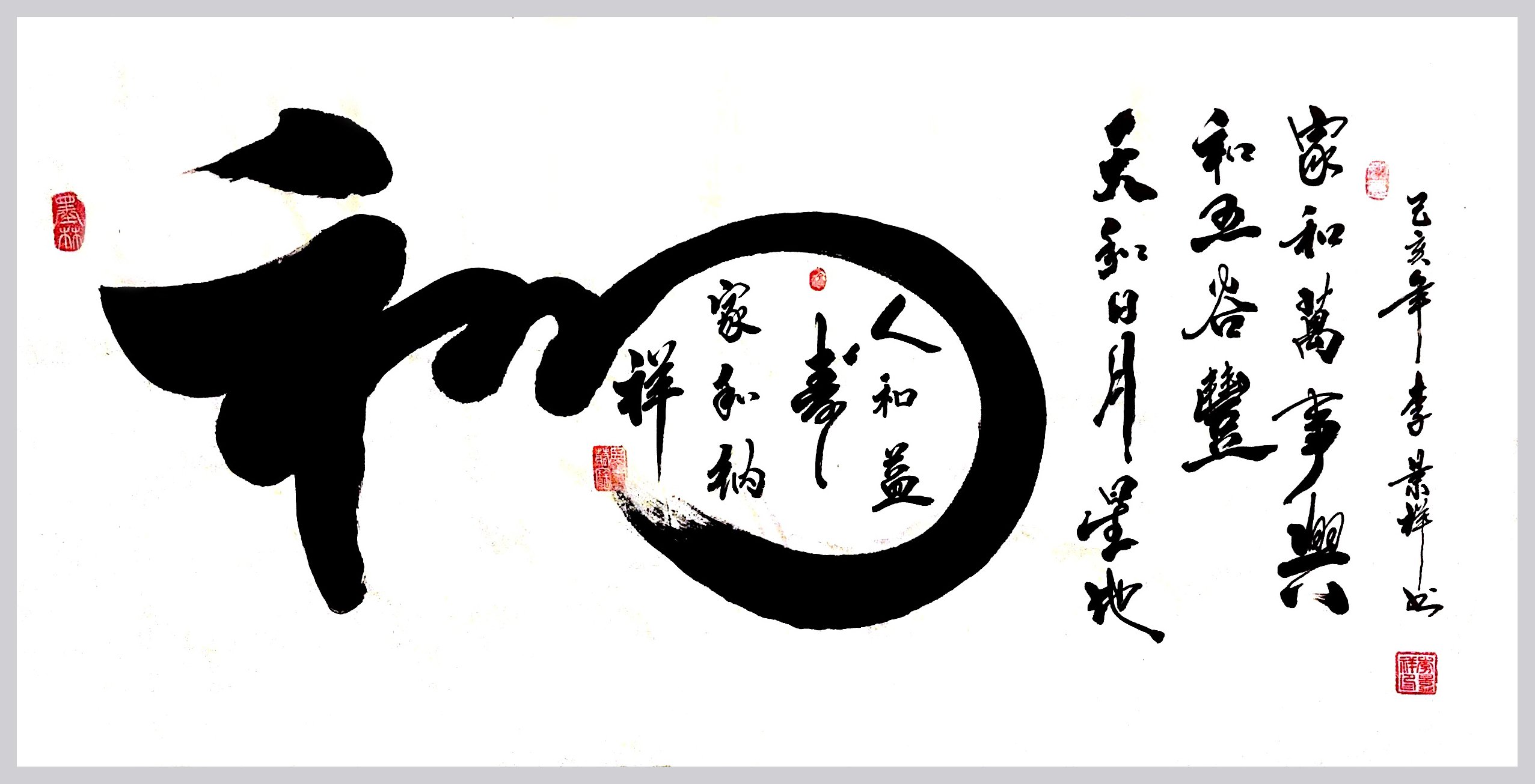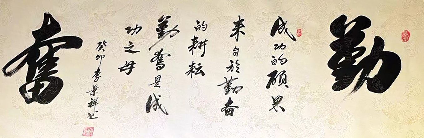 李景祥的艺术成长根植于深厚的传统积淀,幼承家训,耳濡目染间奠定艺术根基。他治学勤勉,虚心求教,先后得到启功、刘炳森等著名书画家的面授指点,兼具名家真传与自身感悟。其书画作品灵动飘逸、大刀阔斧、恣肆张扬,在中国传统书法基础上大胆创新,形成了古朴、雄浑、博大的自家书风。其笔墨枯如铁马秋风、又如行云流水、乱而有致、狂而无野,灵活自由的书法语言,体现了他的艺术天赋和对书法敏锐的感悟能力。景祥先生的书法作品里有画意、有舞蹈的华姿、又有文字的内涵。兼取百家,而独步天下。