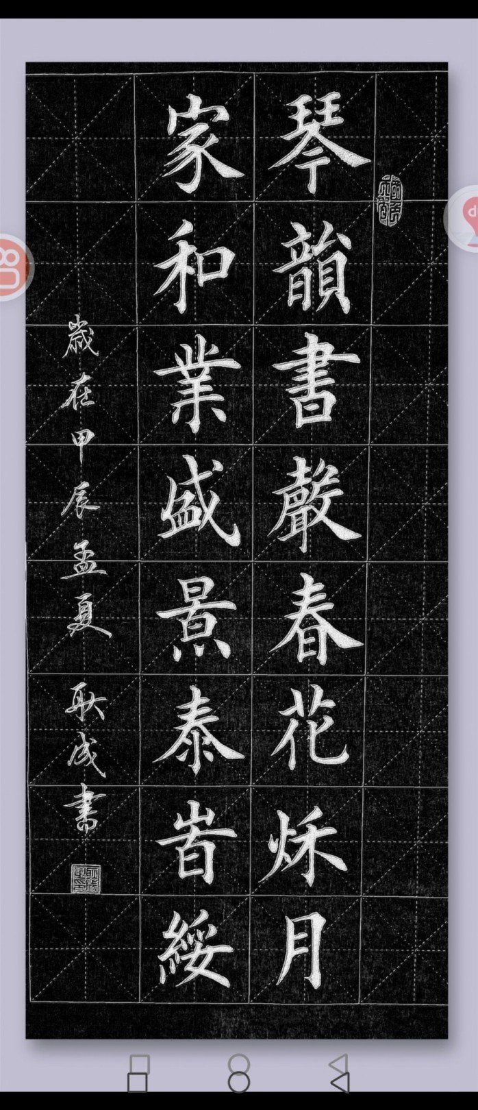 2021年11月中国书法家协会第九届中国书坛新人新作展我的《长征》作品入展 (入展证书)。2024年12月30日我创作的《兰亭序》被中国国家博物馆收藏 (收藏证书)。