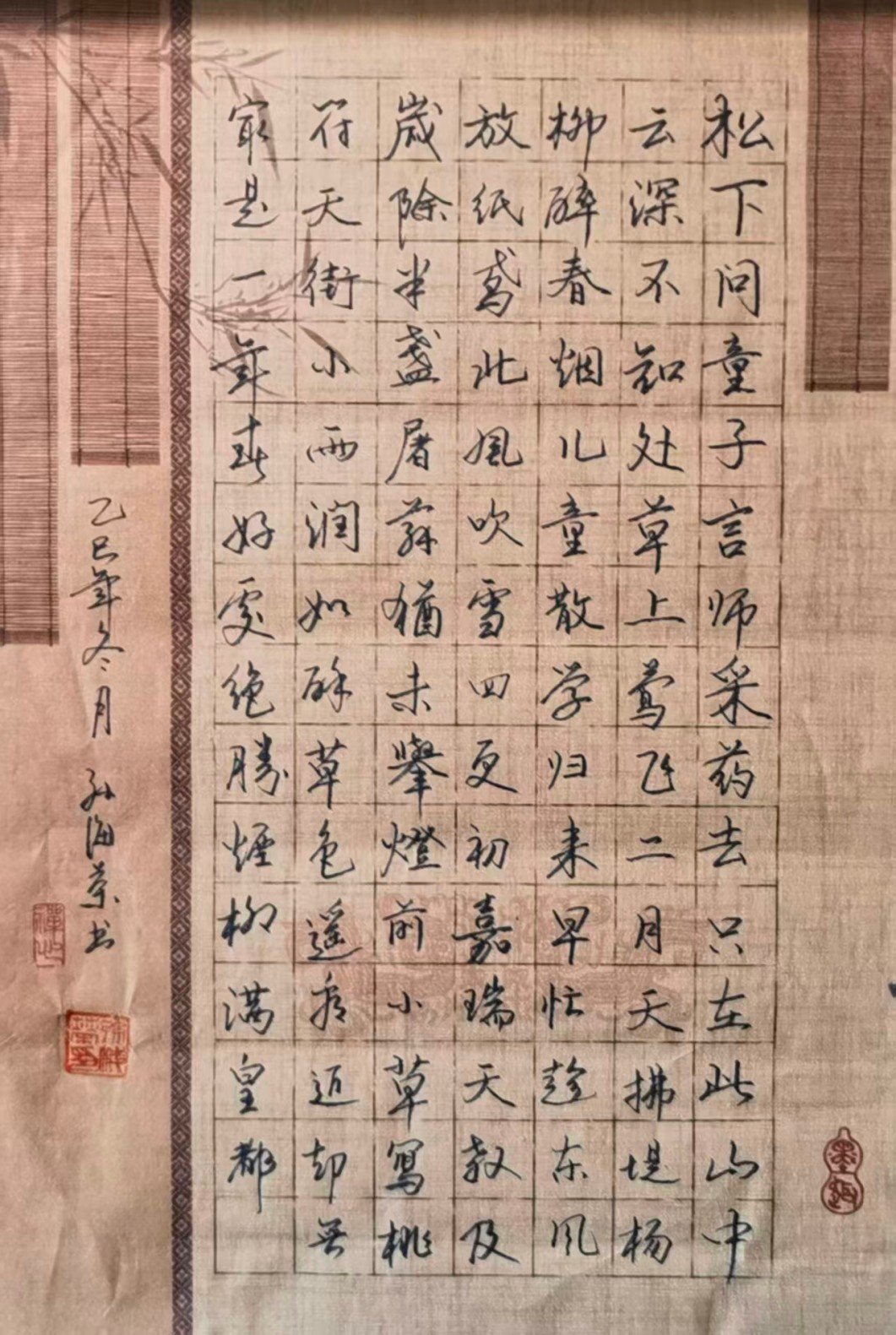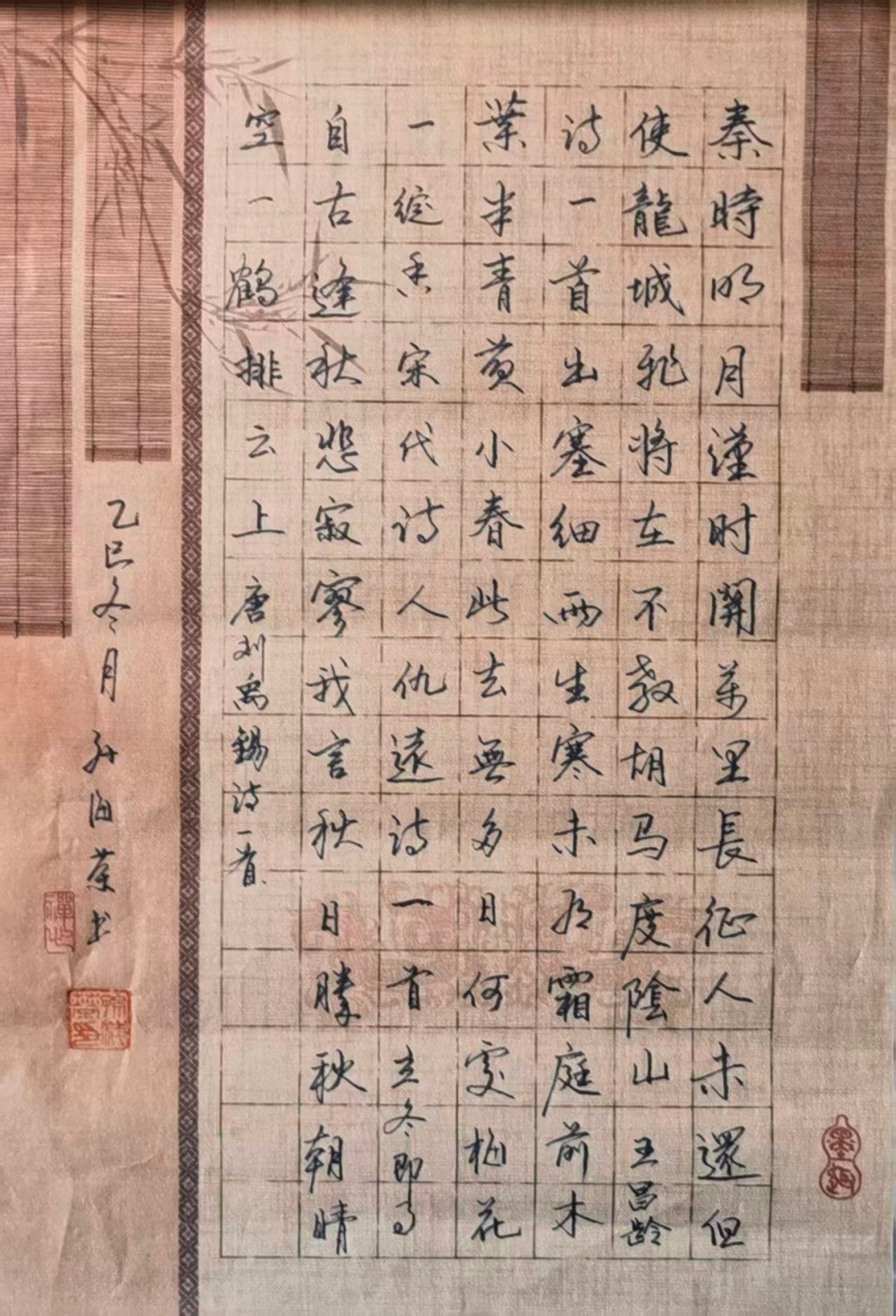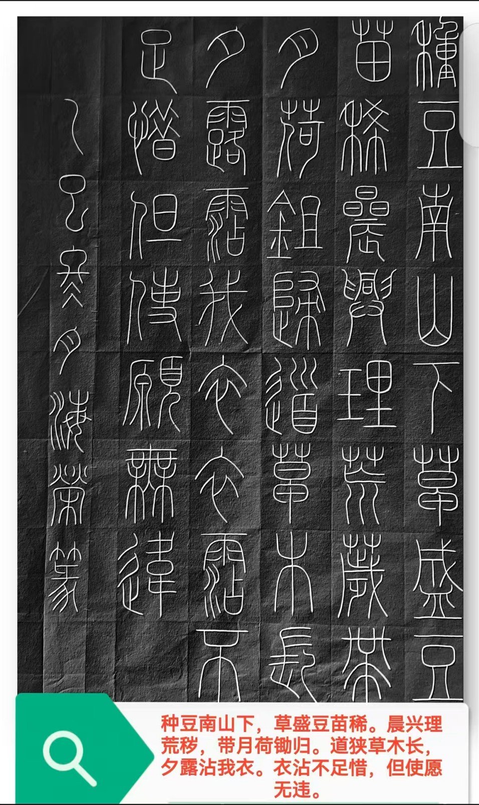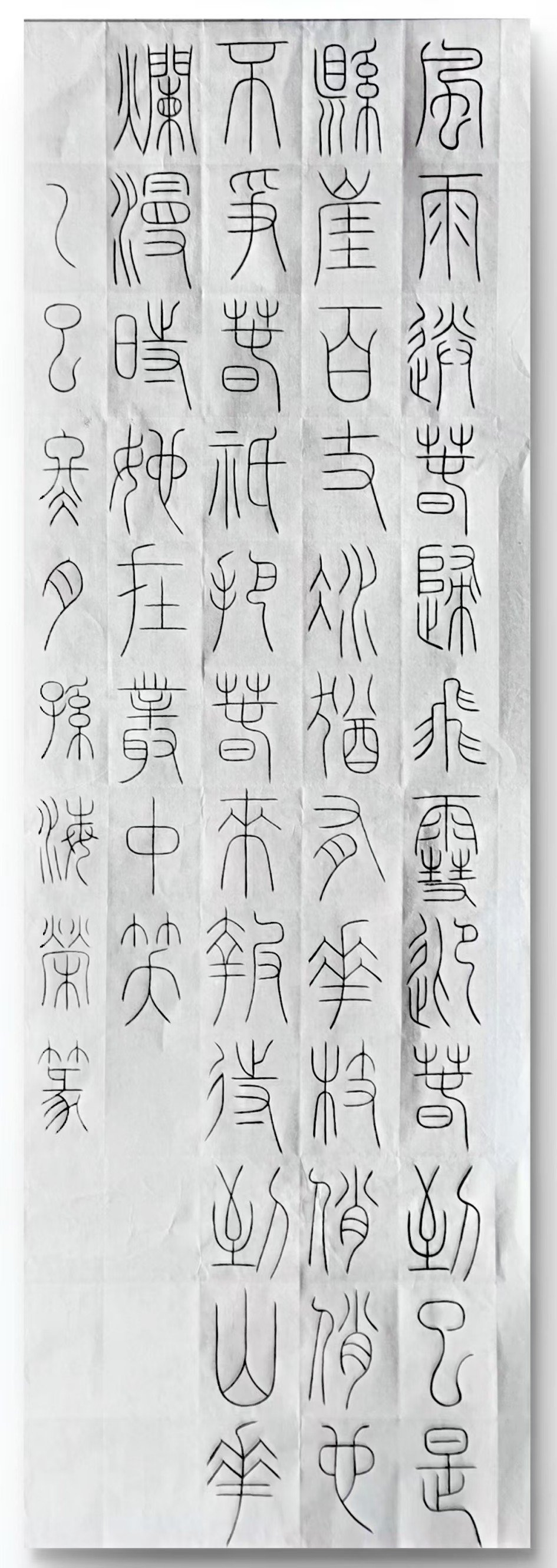 3、 小篆作品(唐•孟浩然诗)“与诸子登岘山”2023年8月入展平凉、庆阳、天水三市州“德润丹青绘华章•情系翰墨抒友谊”书画联展(第三期)