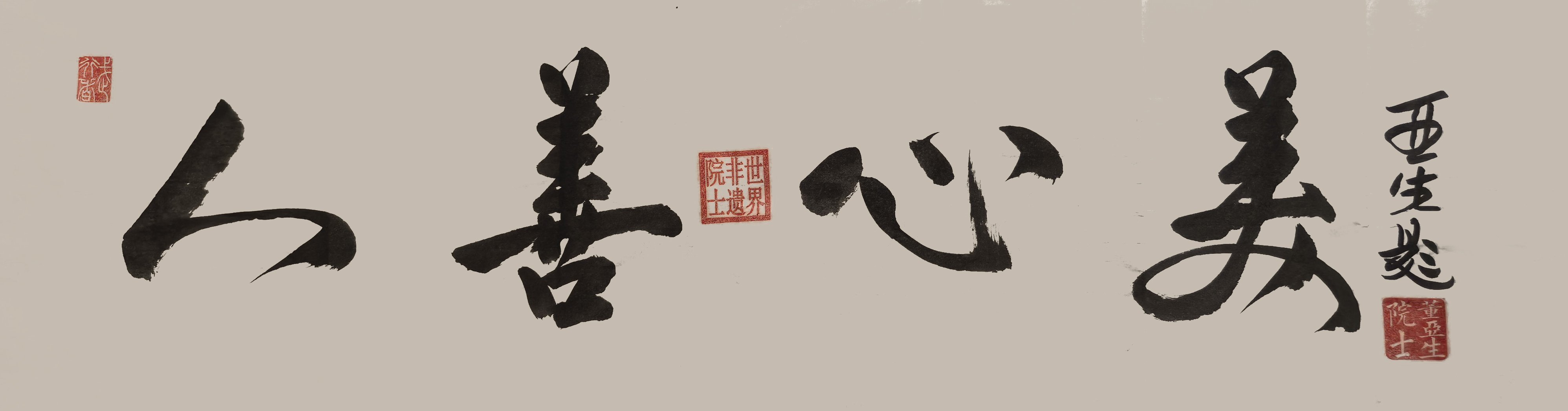 挥毫数十载,董亚生身为中国书法家协会会员,是笔墨传情的“文化使者”。他师从著名书画教育家、教授华敬俊先生,书作融太极圆融气韵与武术刚劲力道,风格独具“武韵墨香”,被中国艺术品鉴定评估中心定价每平尺8000元,广受各界珍藏。2025年10月28日,其作品《德善致祥》在第八届中国兰亭书法展中斩获金奖;同年11月15日,向中国外文局组织的熊猫—100武术嘉年华启动仪式赠送书法作品《武魂》,以笔墨为桥践行文化担当。