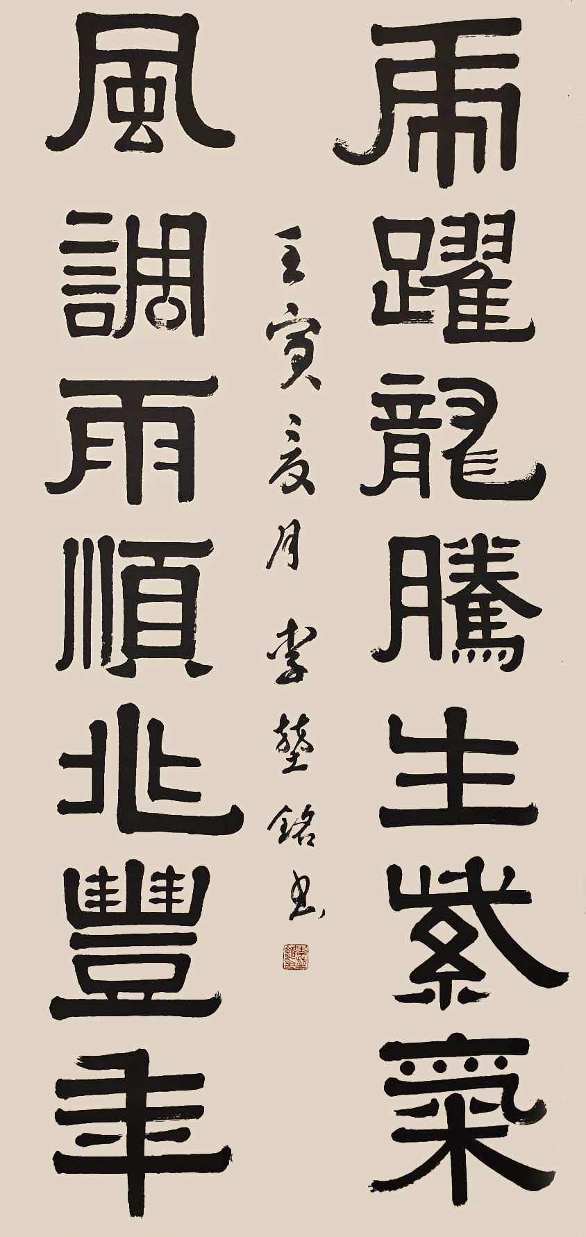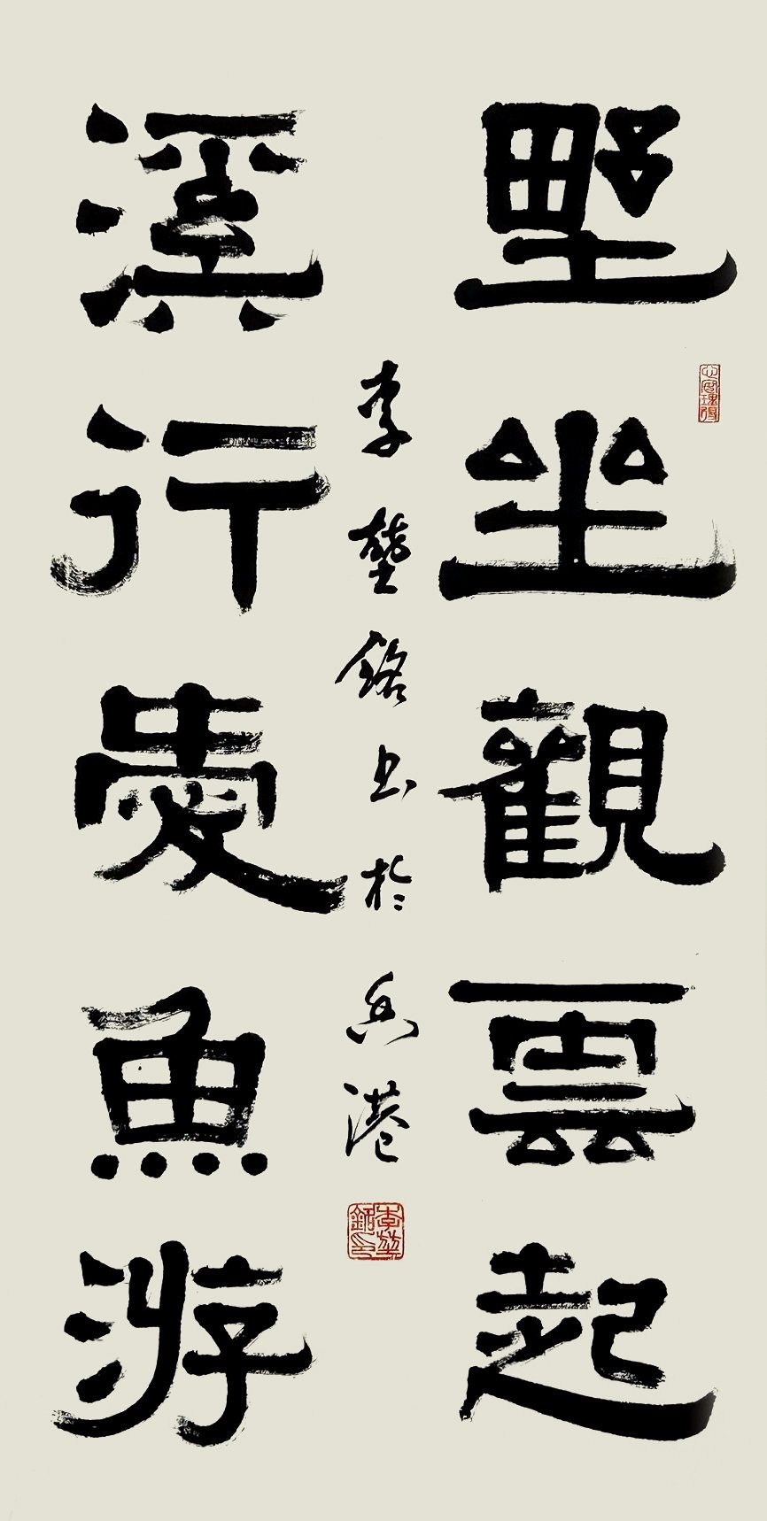 李堃銘的书法根基深植于篆隶。从其作品中可见,他对汉隶的波磔之美、秦篆的圆劲之韵有着深刻的理解与化用。