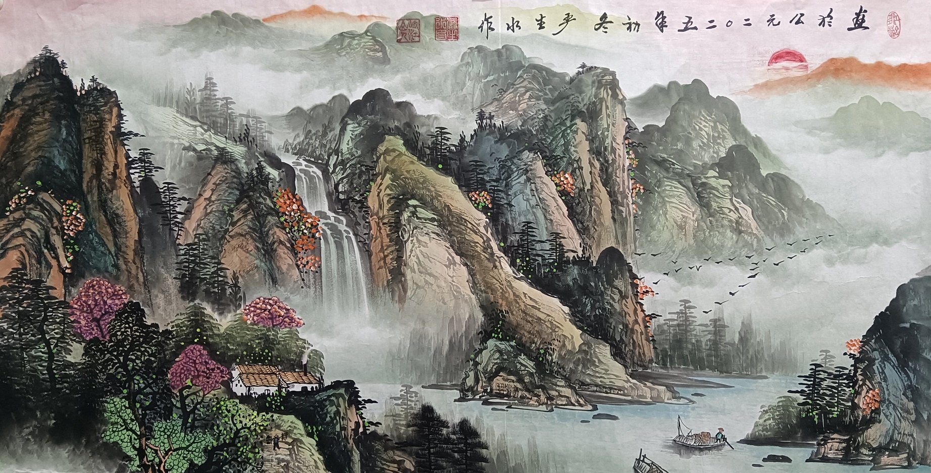 从松涛云海到长城雄关,从翠岭飞瀑到秋山红遍,观严生水的画作,为我们展开了一幅流动的中华山水长卷。他以传统笔墨为骨,以自然万象为肉,以文化意蕴为魂,让每一寸色彩、每一根线条都饱含生命力。在他的画作面前,我们看到的不仅是山川草木的形态之美,更是中国人刻在骨血里的自然观、家国观与生命观——这正是传统山水画跨越千年,依然能触动人心的根本所在,也是严生水先生作品的价值与魅力之核。