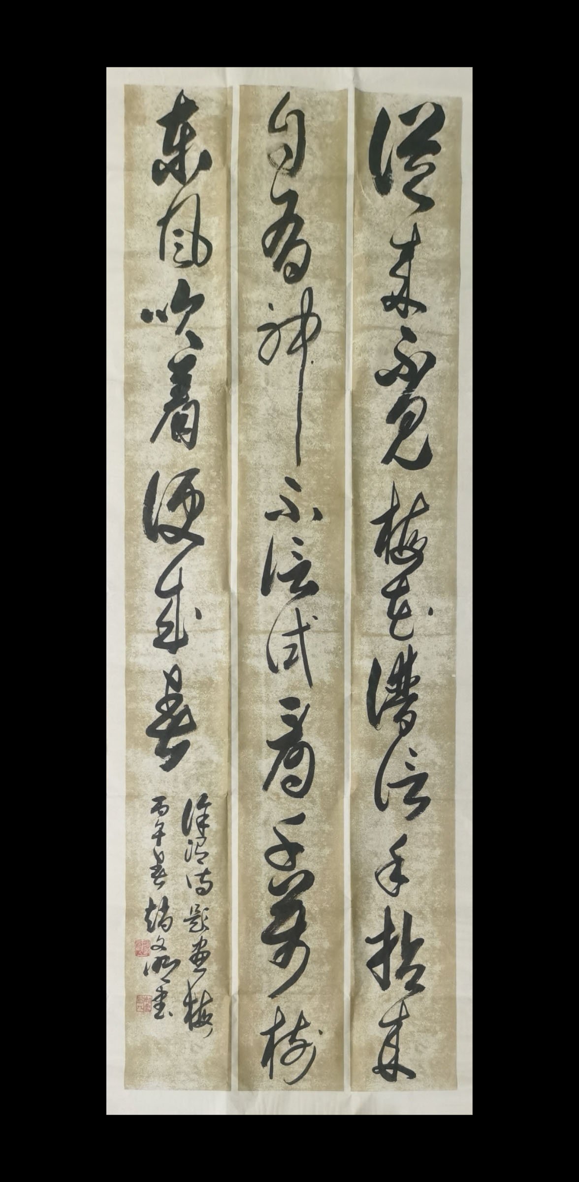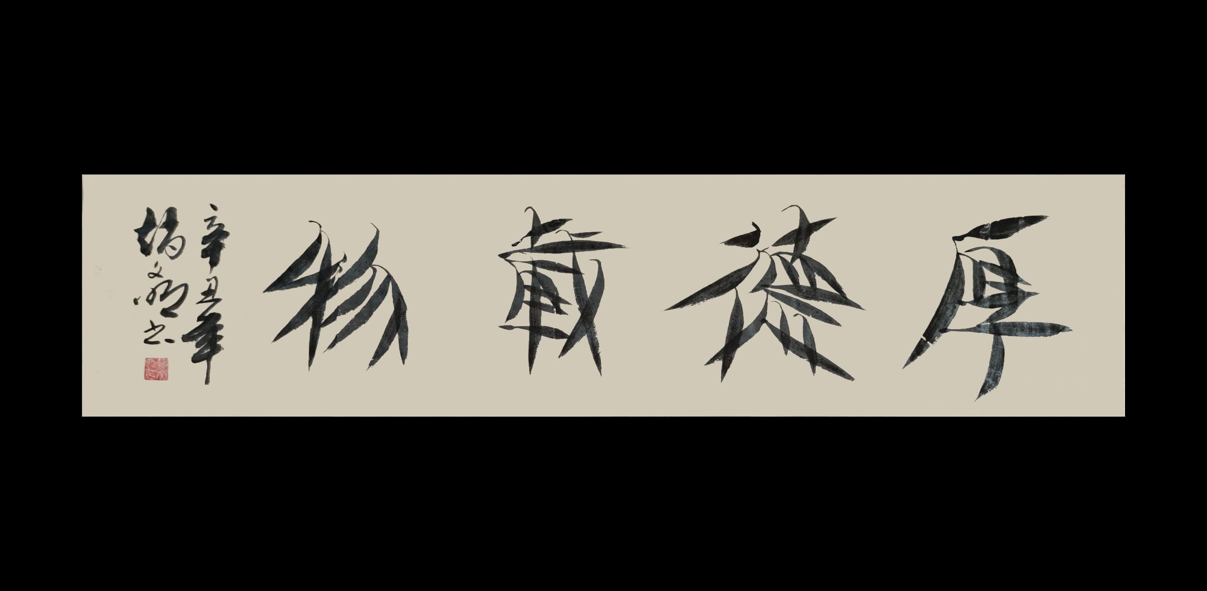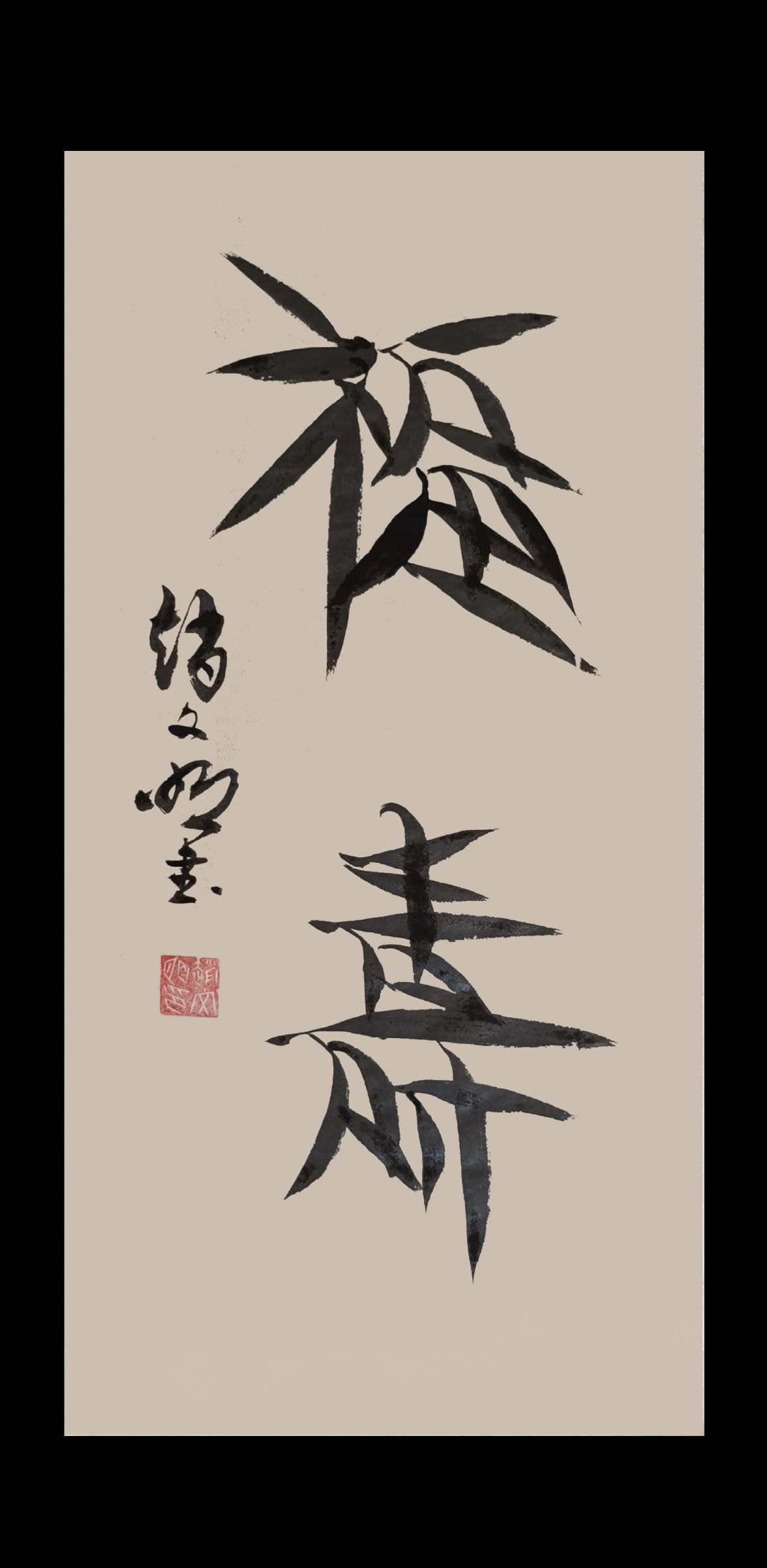 先生深谙“书为心画”之理,于书法一道,遍临历代名帖,精研篆隶草行楷诸体,尤擅行草与创意书法。其行草作品取法魏晋风骨,融唐宋笔意,笔墨苍劲洒脱,结体开合有度,气韵贯通古今,既存古法之醇正,又具时代之生机,于提按顿挫间尽显文人风骨;其独创的 “竹叶书” 更是独步艺林,以竹为形、以字为骨,将书法线条与墨竹意趣完美融合,化用古人 “诗竹画” 的千年国粹,以纯朴苍劲的笔墨,营造超然尘外的意境,让每一幅作品都渗透着古朴厚重的文人印记,铸就了当代书画领域的独特翰墨丰碑。